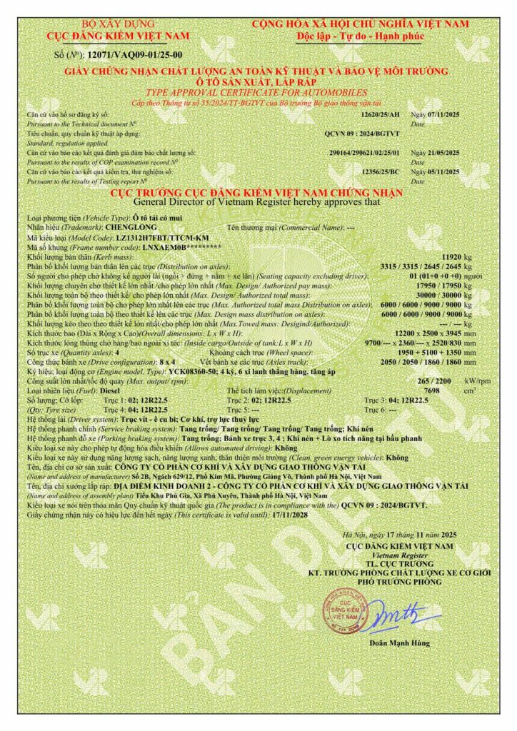 E5.033 Ô TÔ TẢI CÓ MUI CHENGLONG LZ1312H7FBT