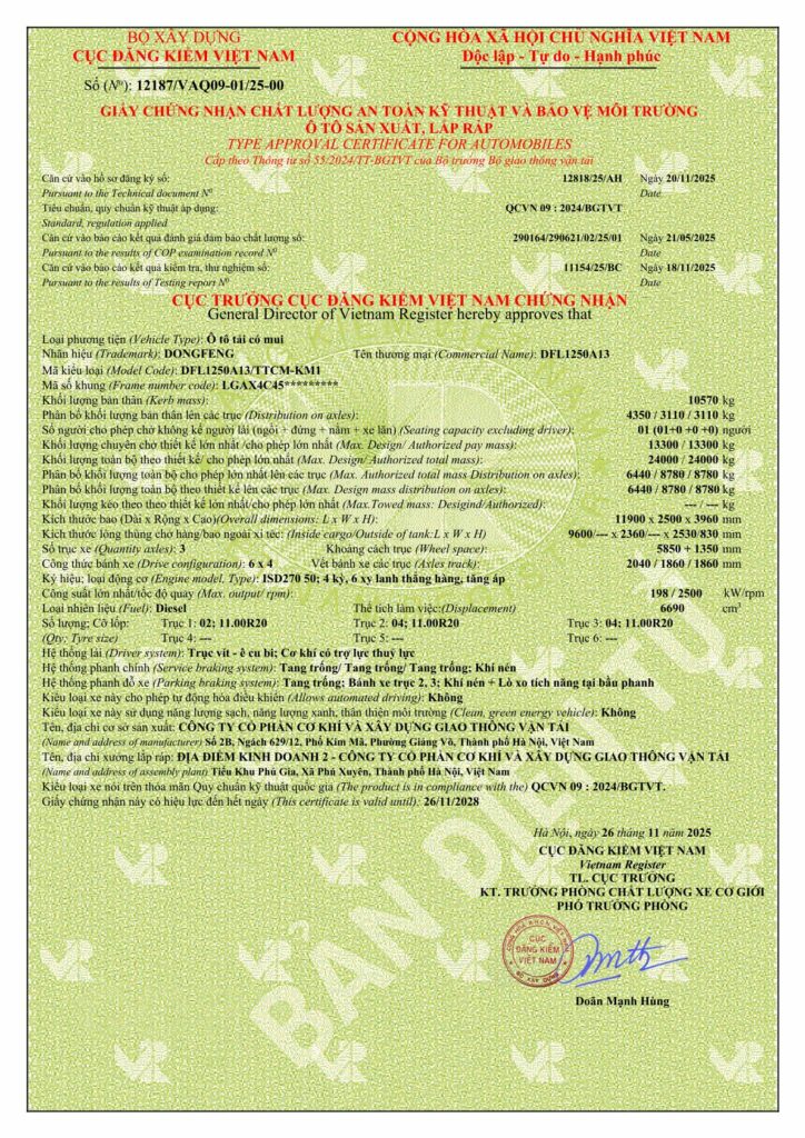 E5.035 Ô TÔ TẢI CÓ MUI DONGFENG DFL1250A13