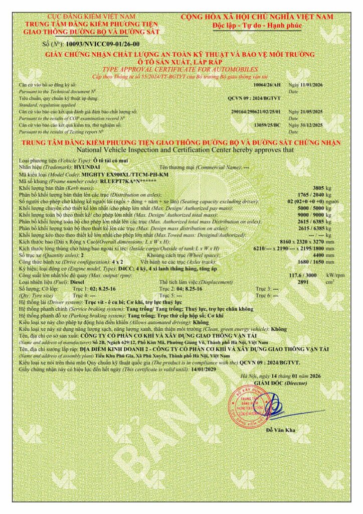 E5.042 Ô TÔ TẢI CÓ MUI HYUNDAI MIGHTY EX900XL thùng 6m21